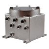 Pelco MBX3MAA is an ExSite Professional stainless steel communications box that converts 120 Vac mains input to 24 Vac output for ExSite Pro camera accessories at outdoor installation points. Weatherproof stainless enclosure resists corrosion in marine, coastal, and heavy-industrial environments. NDAA Section 889 compliant.