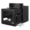 Designed for label stock media. The integrated cutter provides automated label separation at print completion, reducing manual finishing time and improving throughput in high-volume labeling operations.
